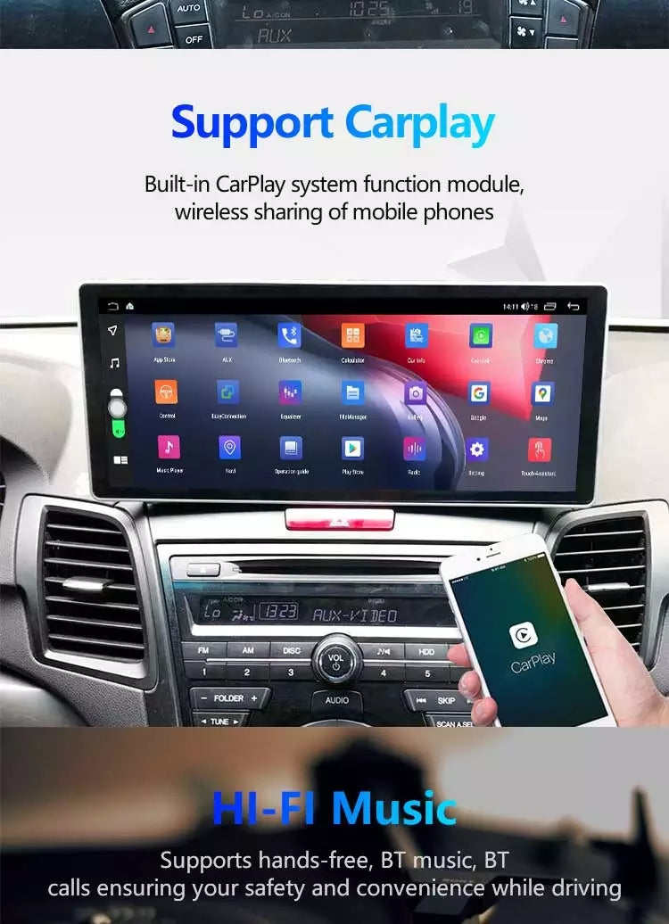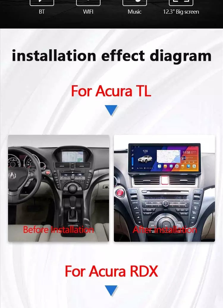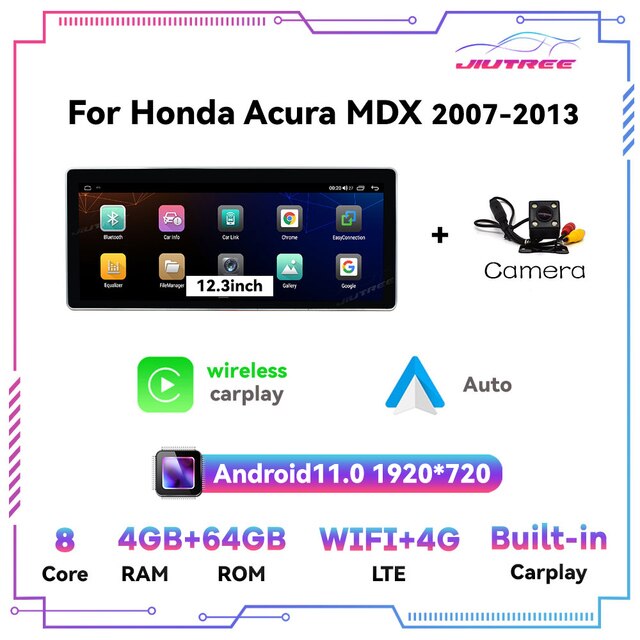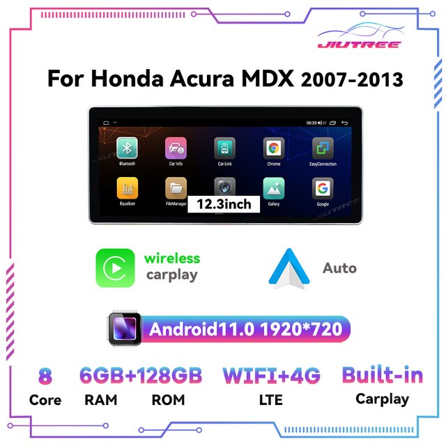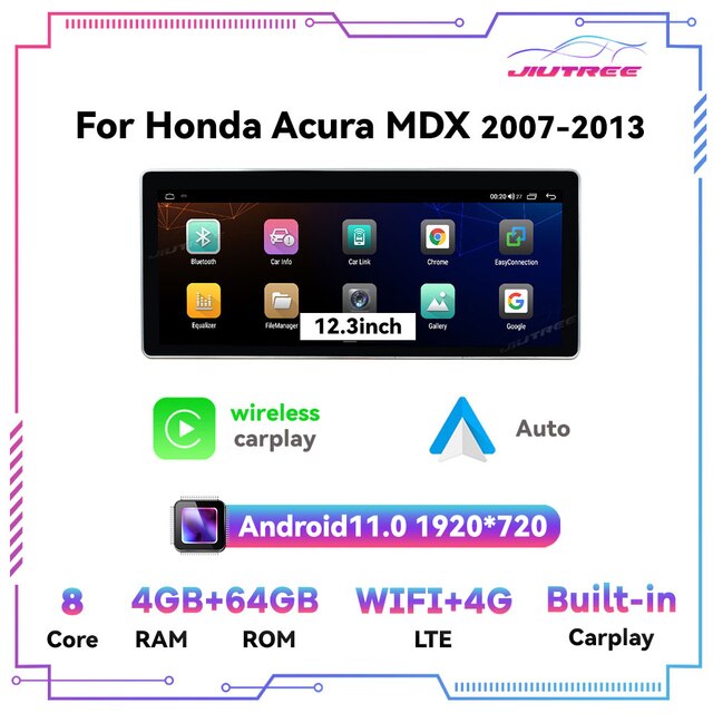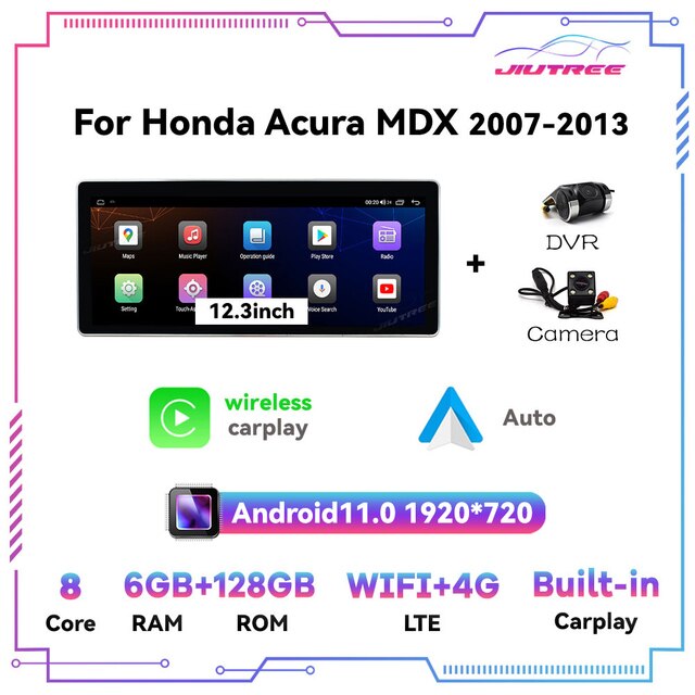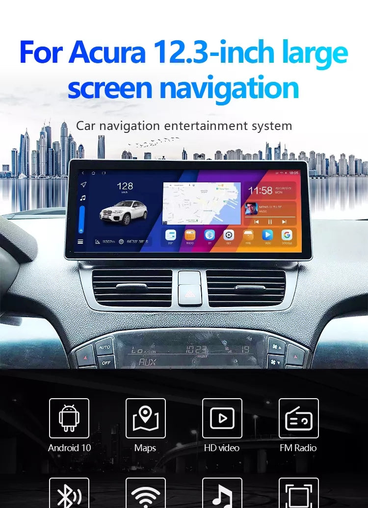 Omnitek 12.3 inch Android11 Car Radio For Honda Acura MDX 2007 2008- 2012 2013 Auto Stereo Multimedia DVD Player GPS Navigation Head Unit