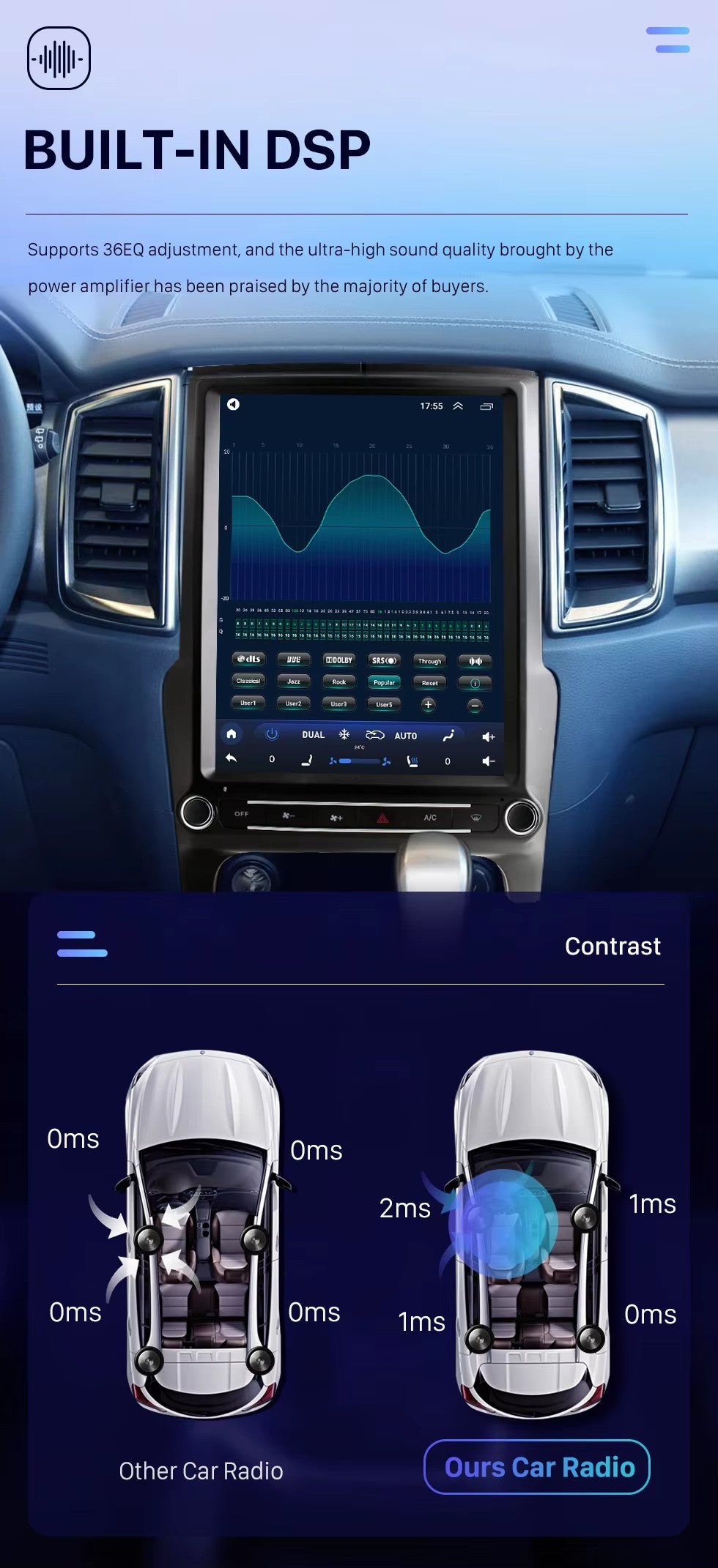 High Quality 9 Inch Screen: The double din Android touchscreen radio has a top-class double din dashboard for music streaming, hands-free phone calls and video. Comes with an 8-inch monitor unit receiver, easy-to-use interface with support Full HD 1080p BLUETOOTH compatible: The double din stereo with backup camera is equipped with Bluetooth for wireless streaming. Powered by Android (KitKat) and 3G Wi-Fi connectivity, it allows you to surf the Internet, play games and download applications. Also Support Apple iOs Backup Camera: The 2 DIN car stereo supports rear view camera. It also features digital file playback that allows you to connect and stream your favorite audio, video and picture files, Picture Settings — Brightness, Contrast, Color GPS NAVIGATION: Double Din Car Stereo with Backup Camera Comes with Touch Control Interface GPS navigation system. It is also a car stereo with CD/DVD player, radio, USB, built-in 16GB memory, auxiliary input/output, preamplifier and subwoofer output. Updated Unique Features: In addition to those mentioned above, the dashboard stereo touchscreen also has equalizer audio controls, G Play Store and G Maps, multi-touch capacitive display screen and Mirror Link/Airplay support