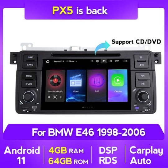 OMNITEK Android 11 RDS 4G 64G Car DVD GPS Navigator For BMW E46 Coupe (M3 Rover) 316i 318i Audio 4G LTEW Carplay SWC