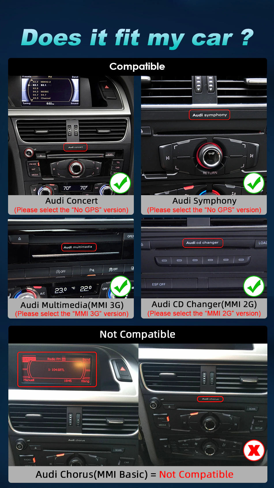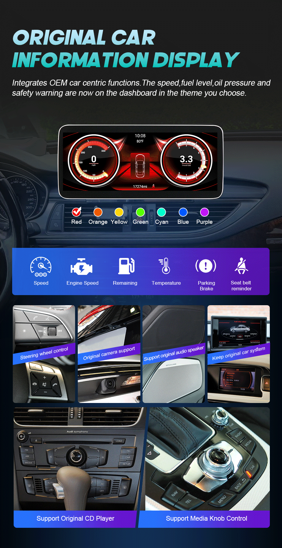 9/10 inch Android 11.0 HD digital touch screen 1. Android 11.0 operating system 2. Support 1080P+ support lossless music 3. Support steering wheel control (if your car has it) 4. Support Phone Link (AirPlay, Miracast) 5. Output: 4x50W max Power output/5.1 channel lossless audio output 6.Audio Frequency: 7 EQ balanced audio processing technology 7.OSD language: English/Russian/French/German/Spanish/Italian/Arabic/Portuguese/Turkish/Thai/ More than 20 languages such as Polish/Hebrew 8. Automatically display rear view camera image when reversing 9. Support media card/GPS card/USB memory stick up to 32GB SD card and 1T hard disk 10. Audio model: Classic/Rock/ Pop/Hall Cinema 11. Music spectrum: display music spectrum when playing audio 12. Audio format: MP3/ WMA/ FLAC/ APE/ ACC etc. 13. Picture format: JPG/ BMP/ GIF/ PNG etc. 14. Video format: H264/ MP4/ AVI/ RMVB/ FLV/ MKV/ MOV, etc. 15.WiFi: Built-in WiFi and antenna 16.Car Door Info: Display the status of the door switch (the original car has this function) 17.Rotating Speed: Display the speed on the screen 18. Running Speed: Display the running speed or engine on the screen 19. Rear view camera: For cars without original camera 20. Support the latest phonebook search, you can search and find contacts in the downloaded phonebook, just enter the name The first letter, you will find some related names, then you can choose the suitable one 21.Radio Tuner with RDS, 30 Preset Radio Stations (FM: 3*6, AM: 2*6) 22.USB port and Micro SD slot, support USB stick and memory card up to 32GB 23.Parking Sensor: Suitable for cars without original parking sensor 24.TPMS: USB TPMS for Android car GPS 25.Support steering wheel control function Support steering wheel control function