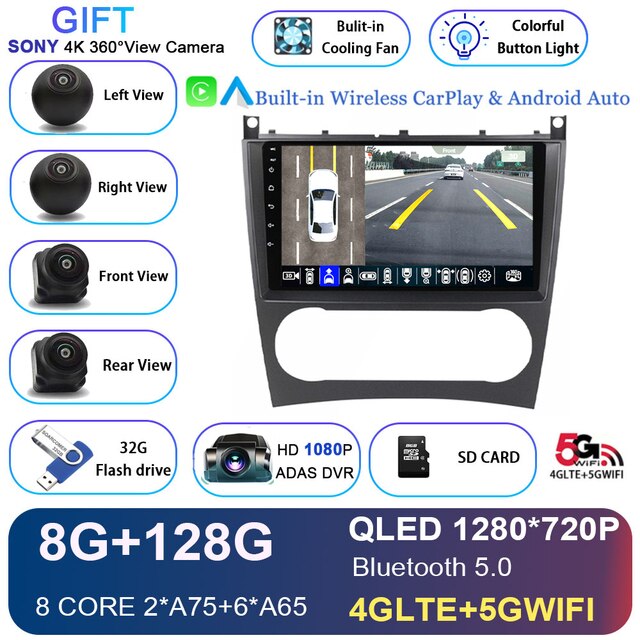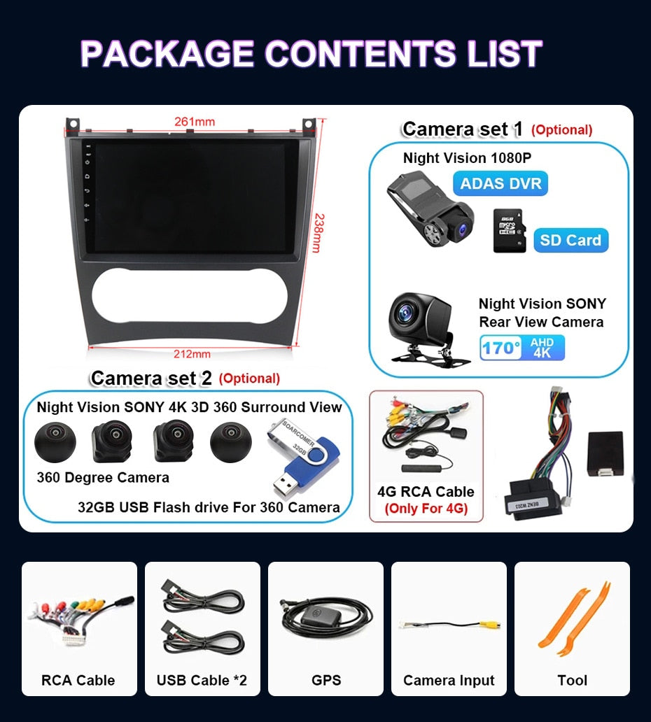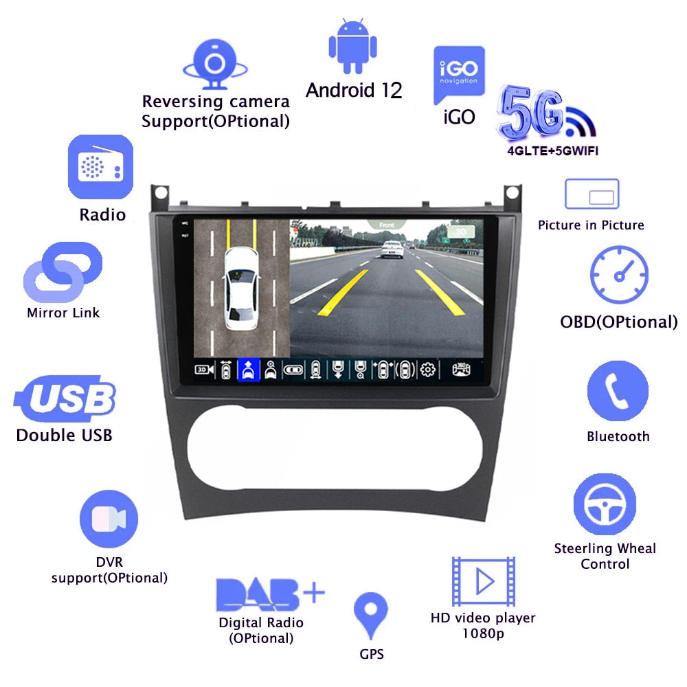 Omnitek Android 12 For Mercedes Benz W203 W209 W219 W169 A160 C180 C200 C230 C240 CLK200 Car Radio Multimedia Player Navigation GPS dvd