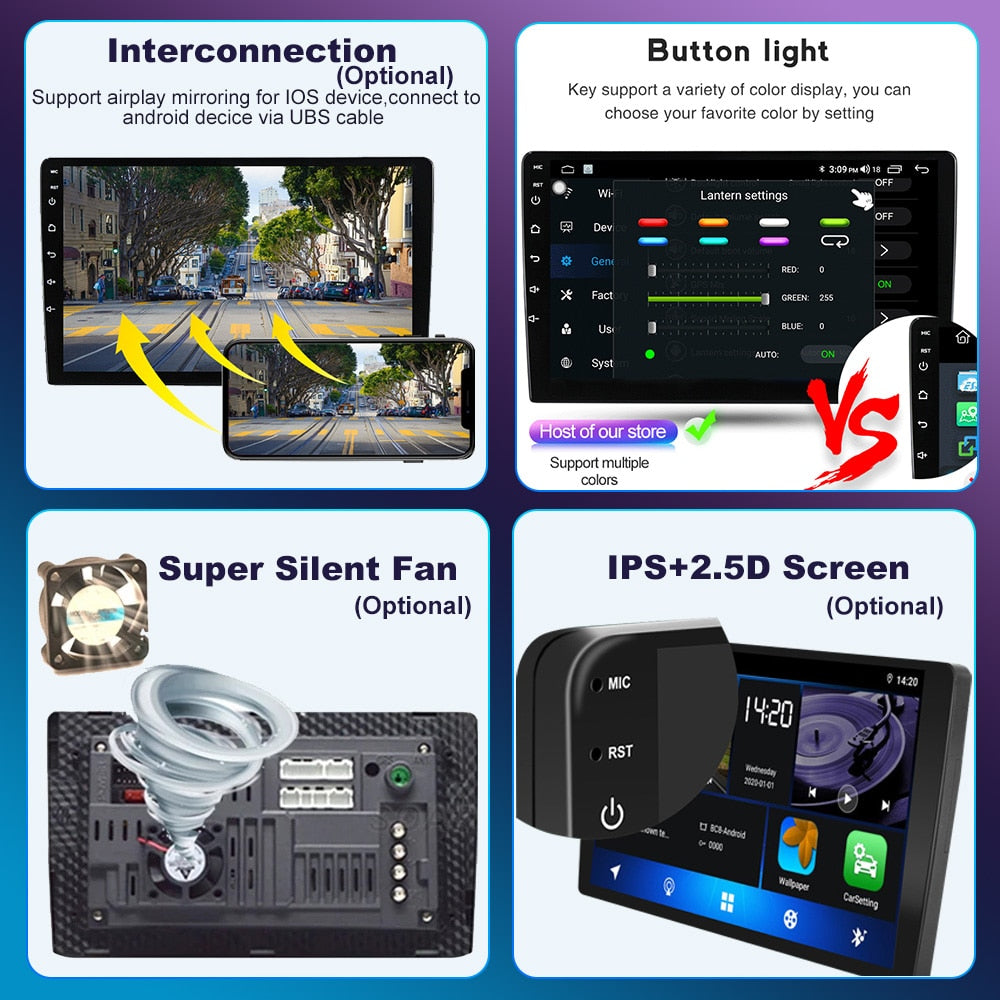 OMNITEK 7 Inch Autoradio 2 Din for Toyota Toyota Corolla Vios Crown Camry Hiace Previa RAV4 Central Multimedia Android with Carplay