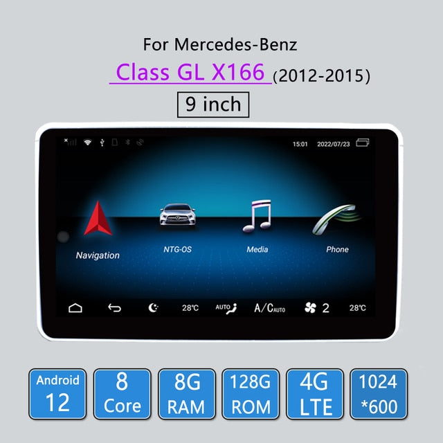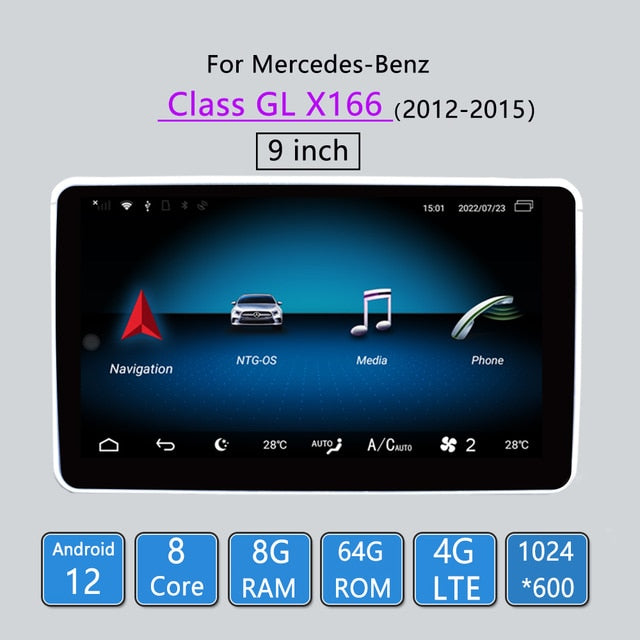 Omnitek For Mercedes Benz Class ML W166 GL X166 GL500 Android 12 Car GPS Navigation CarPlay Apple 2011 2015 DVD Multimedia Playe Screen
