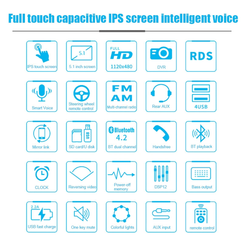 Omnitek Car Radio 5188 1din Mp5 Player Touch RDS AM FM 4-USB 5.1 Inches Bidirectional Interconnection Support Android 10 Mirrorlink