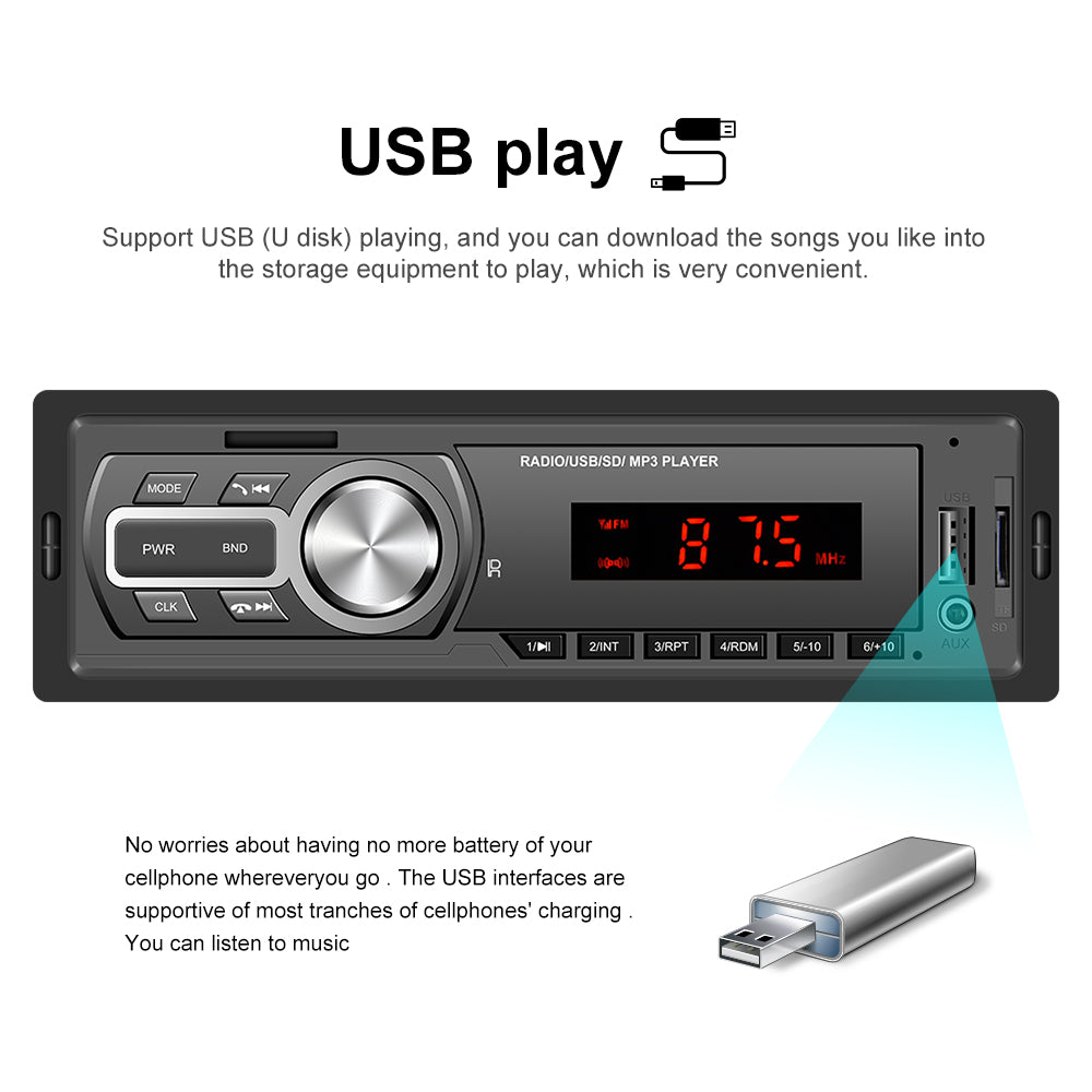 Car Stereo Audio Player Bluetooth-compatible TF Card U Disk AUX-Input FM Radio Auto Head Unit