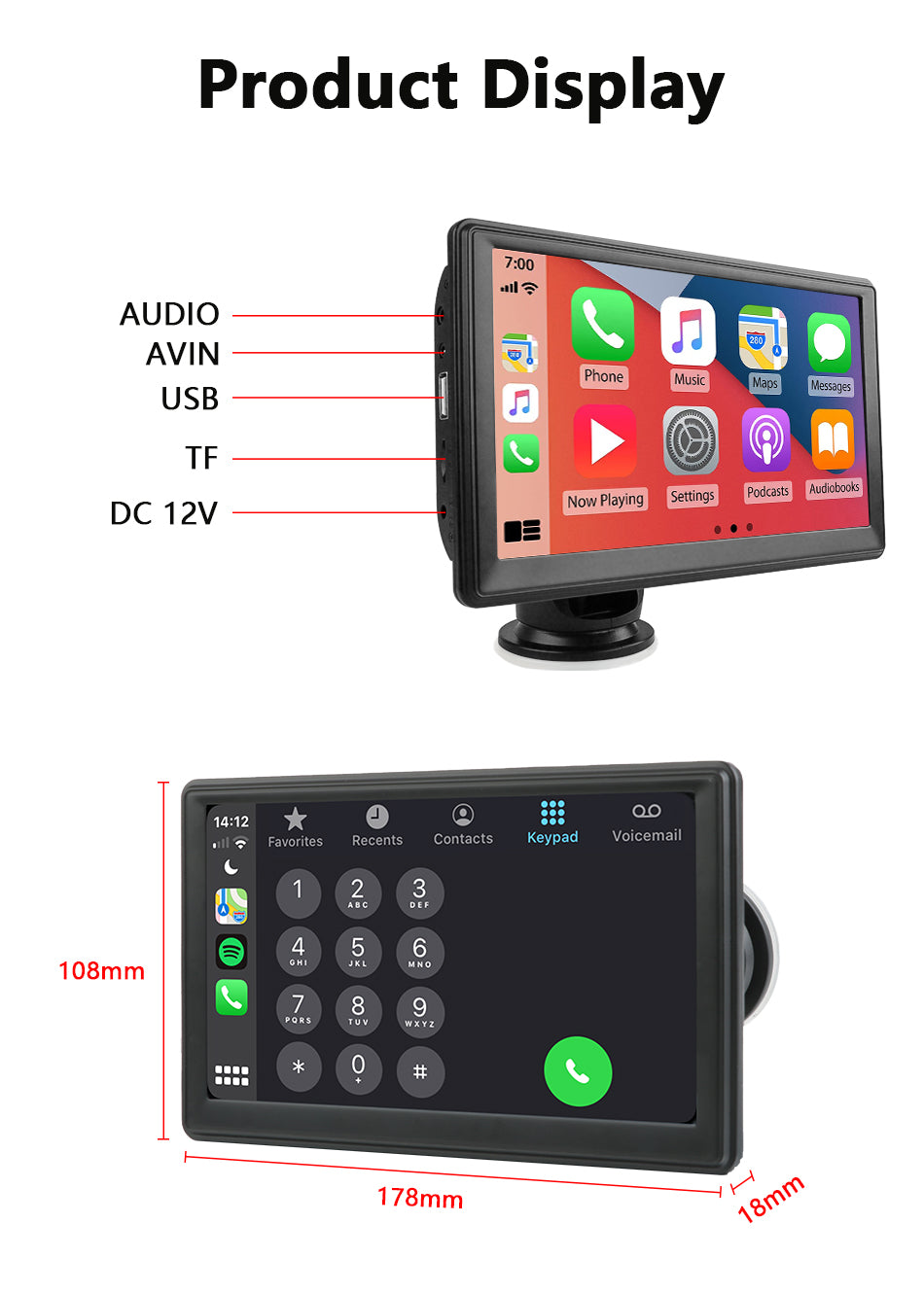 Omnitek Universal 7inch Car Radio Multimedia Video Player Wireless Carplay GPS Navigation Apple Android Auto Touch Screen