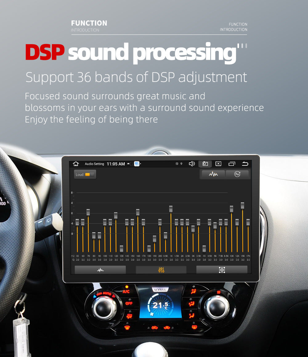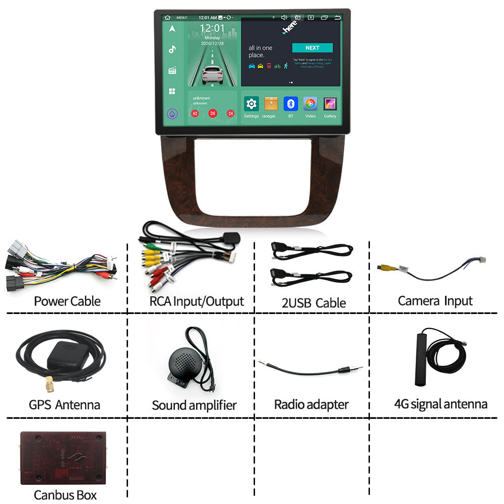 13.3 inch Android 11.0 HD digital touch screen 1. Android 11.0 operating system 2. Support 1080P+ support lossless music 3. Support steering wheel control (if your car has it) 4. Support Phone Link (AirPlay, Miracast) 5. Output: 4x50W max Power output/5.1 channel lossless audio output 6.Audio Frequency: 7 EQ balanced audio processing technology 7.OSD language: English/Russian/French/German/Spanish/Italian/Arabic/Portuguese/Turkish/Thai/ More than 20 languages such as Polish/Hebrew 8. Automatically display rear view camera image when reversing 9. Support media card/GPS card/USB memory stick up to 32GB SD card and 1T hard disk 10. Audio model: Classic/Rock/ Pop/Hall Cinema 11. Music spectrum: display music spectrum when playing audio 12. Audio format: MP3/ WMA/ FLAC/ APE/ ACC etc. 13. Picture format: JPG/ BMP/ GIF/ PNG etc. 14. Video format: H264/ MP4/ AVI/ RMVB/ FLV/ MKV/ MOV, etc. 15.WiFi: Built-in WiFi and antenna 16.Car Door Info: Display the status of the door switch (the original car has this function) 17.Rotating Speed: Display the speed on the screen 18. Running Speed: Display the running speed or engine on the screen 19. Rear view camera: For cars without original camera 20. Support the latest phone book search, you can search and find contacts in the downloaded phone book, just enter the name The first letter, you will find some related names, then you can choose the suitable one 21.Radio Tuner with RDS, 30 Preset Radio Stations (FM: 3*6, AM: 2*6) 22.USB port and Micro SD slot, support USB stick and memory card up to 32GB 23.Parking Sensor: Suitable for cars without original parking sensor 24.TPMS: USB TPMS for Android car GPS 25.Support steering wheel control function Support steering wheel control function