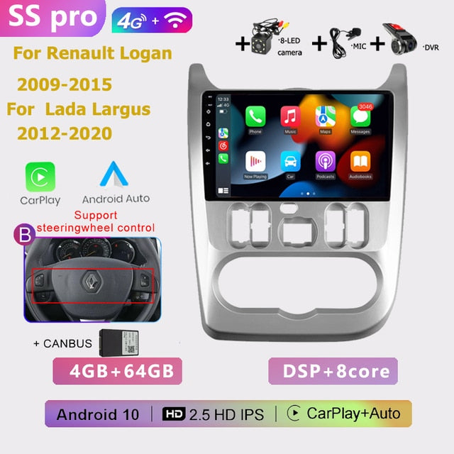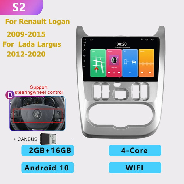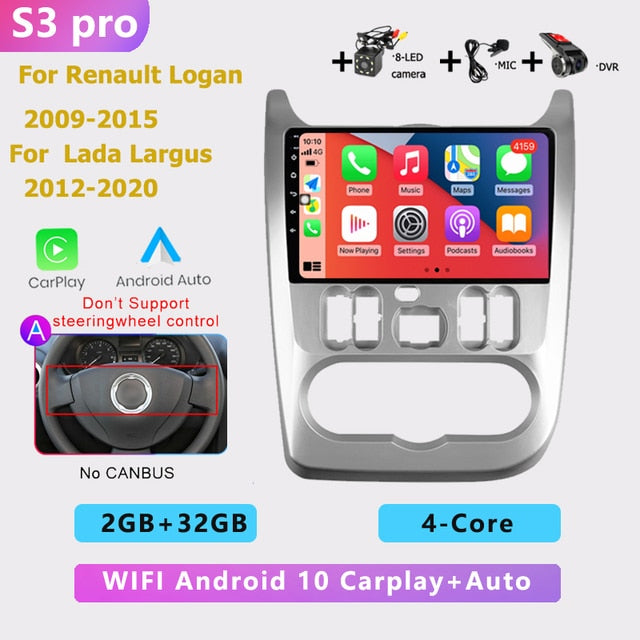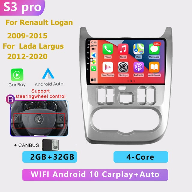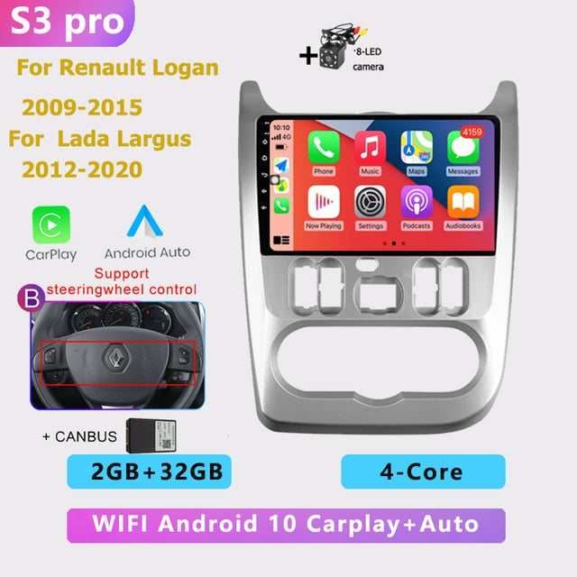 OMNITEK 2 din android AUTO Car radio multimedia player Carplay GPS navigation No DVD for Renault Logan 1 Sandero Dacia Duster 2009-2015