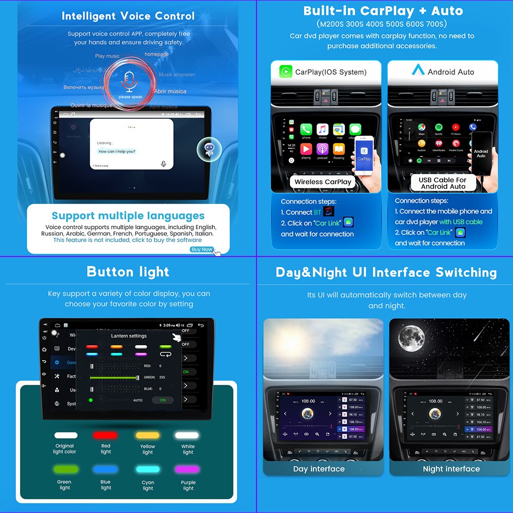 Built-in Carplay + Auto: only M200S M300S M400S M500S M600S M700S