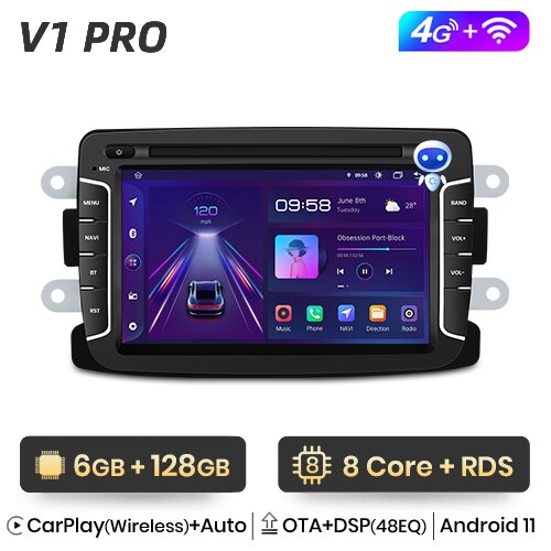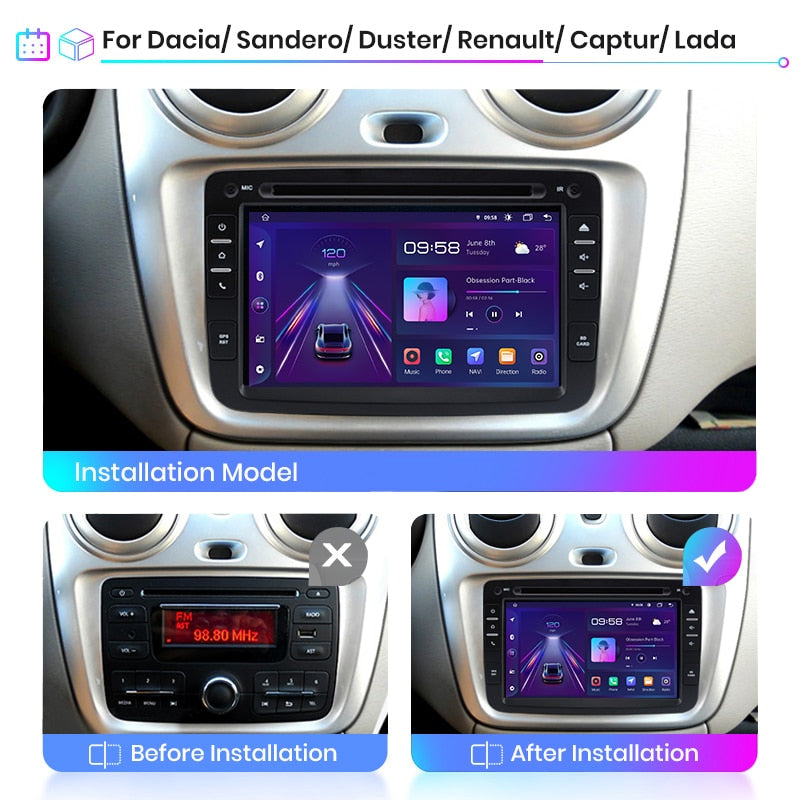 OMNITEK Android Autoradio for Renault Dacia Car Radio Multimedia Carplay Bluetooth 7 Inch Touch Screen DVD Player