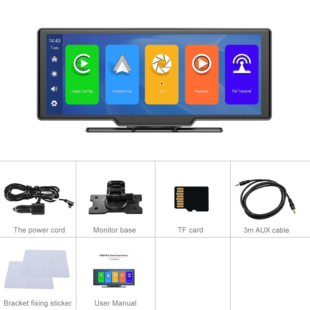 Omnitek 9" Car Mirror Monitor Video HD Recording Carplay Android Auto Wireless Connection WiFi DVR GPS Navigation Dashboard