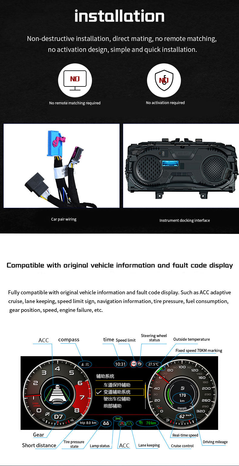 Omnitek 12INCH screen 4 core LCD Dashboard speedometer digital cluster for BMW X5-E70 2006-2013 LINUX System