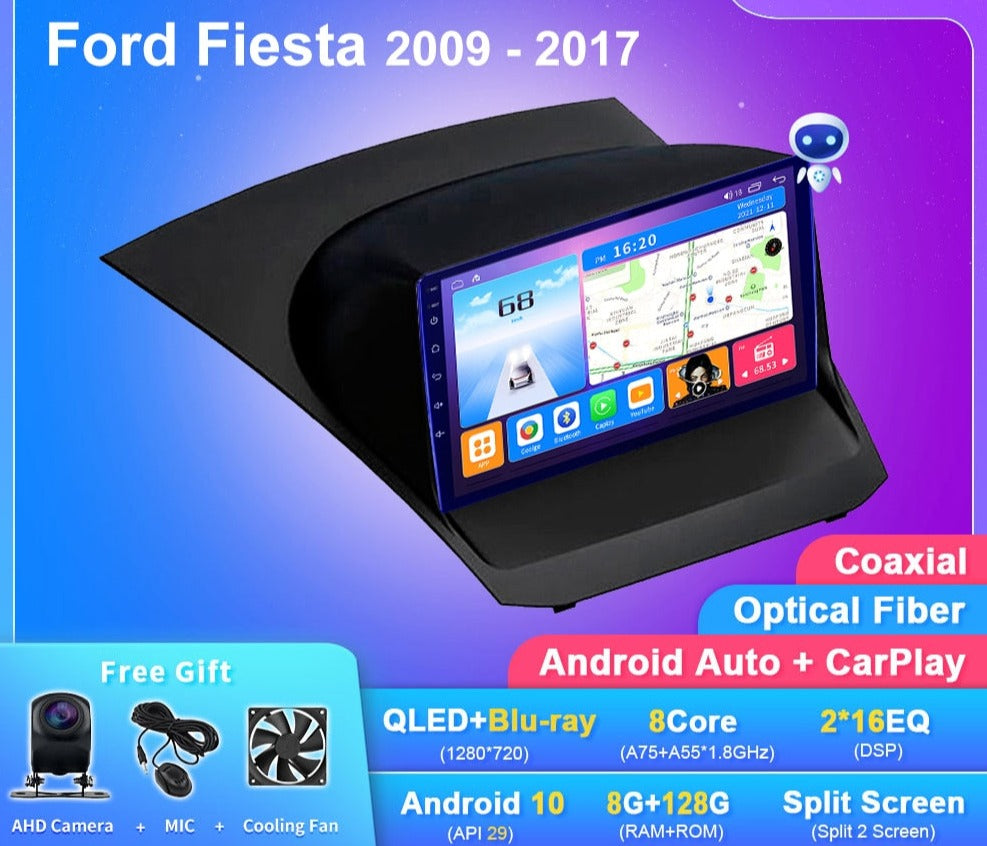 OMNITEK Android Auto Radio For Ford Fiesta 2009 - 2017 Car Multimedia Video Player Stereo GPS Navigation DSP Carplay 2din DVD HU