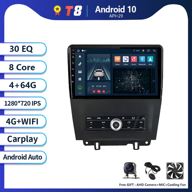 OMNITEK 8G 256G For Ford Mustang 2010-2014 Car Radio Android 10 Auto Carplay Multimedia Player Navigation GPS Stereo 2din DVD HU
