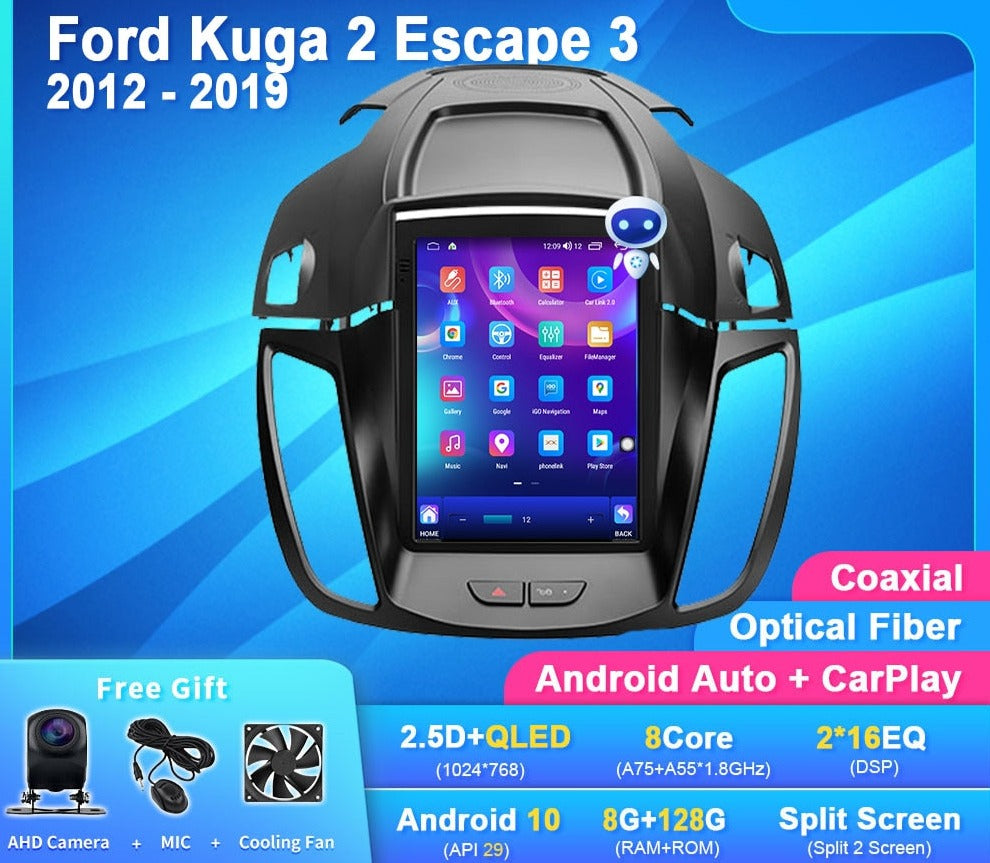 OMNITEK For Ford Kuga 2 Escape 3 2012 - 2019 For Tesla Style Screen Car Radio Multimedia Video Player Navigation GPS Android HU