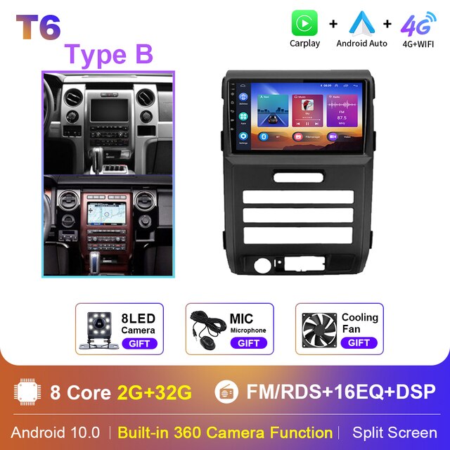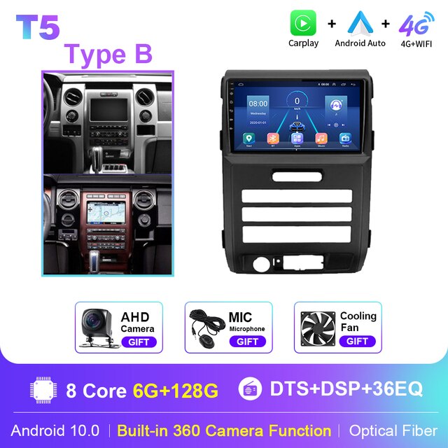 OmnitekT5 Android 10 For Ford F150 P415 Raptor 2008-2014 Car Radio 4G WIFI Video Player Carplay GPS Navigation 2 Din No DVD