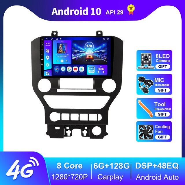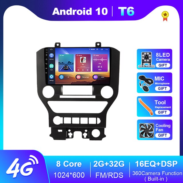 Omnitek 2 Din Android 10 For Ford Mustang 2015 2016 2017-2019 Car Radio GPS Navigation Android Auto 4G WIFI BT DSP DVD Player