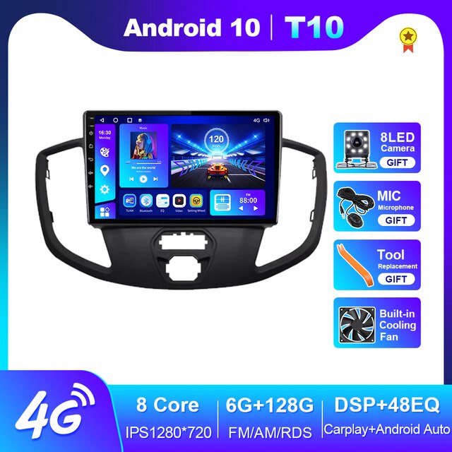 OMNITEK For Ford TRANSIT 2015 2016 2017 2018 Car Radio Android 10 Auto DSP Carplay 4G WIFI GPS Navigation No DVD Player 2 Din