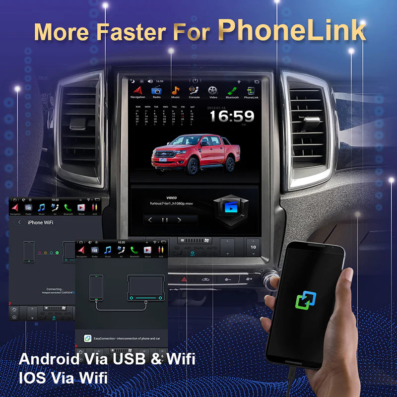 Experience ultimate luxury and sophistication in your Ford Ranger/Everest with this 12.1 inch Tesla style car player. Its sleek and modern design is handcrafted for the perfect touch of elegance, while its advanced technological features provide a spectrum of multimedia radio mobile in dash navigation capabilities. Unrivaled in its class, this impressive car unit offers an exclusive experience of comfort and convenience.