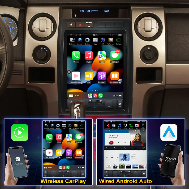 Omnitek Android Tesla Screen for FORD F150 2009-2013 Head Unit Video Audio Player in Dash Multimedia GPS Navigation with Carplay/ Android Auto