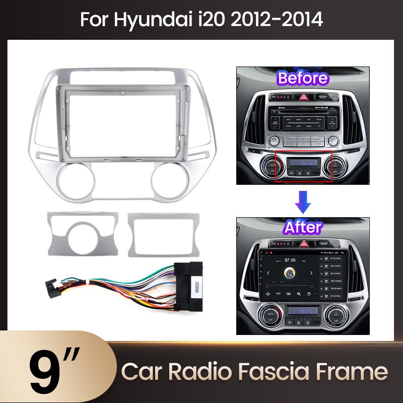 9 inch Car Radio Frame Fascia Panel For Hyundai I20 2012 2013 2014 Dashboard Accessories Refitting Stereo Car Autoradio Trim Kit