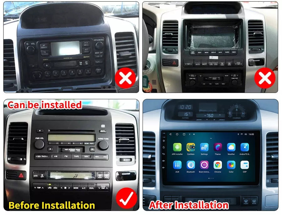 OMNITEK 1024*600 HD Touch Screen Universal Android Car Radio GPS Dvd Player for Toyota Land Cruiser Prado 2004