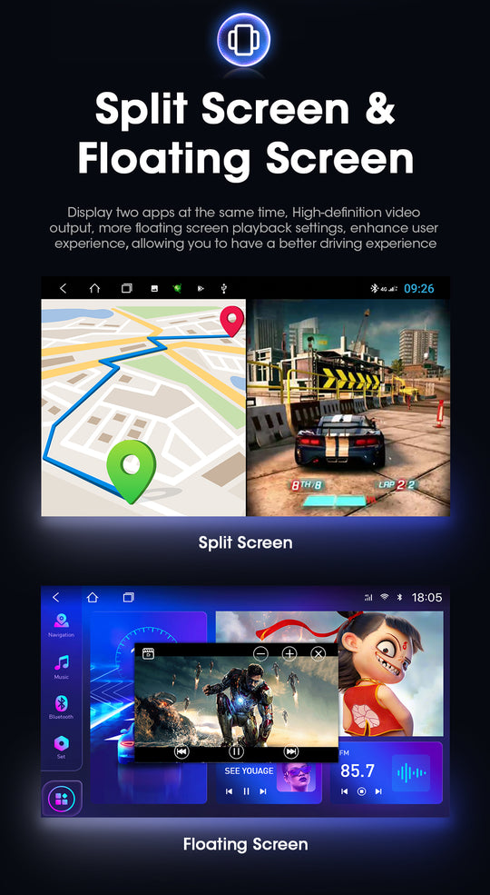 GPS WITH ENTERTAINMENT SYSTEM Main features: Operating system: Android10.0 Screen size: 9/10 inch high-definition digital screen Screen resolution 1024*600 Memory: 1GB+ 16GB/2GB+ 32GB/4GB+64GB (optional) Processor: 4-core/8-core output power : 4x50W FM Frequency Range: 87.5-108 MHz,...Regular price From $199.00 -