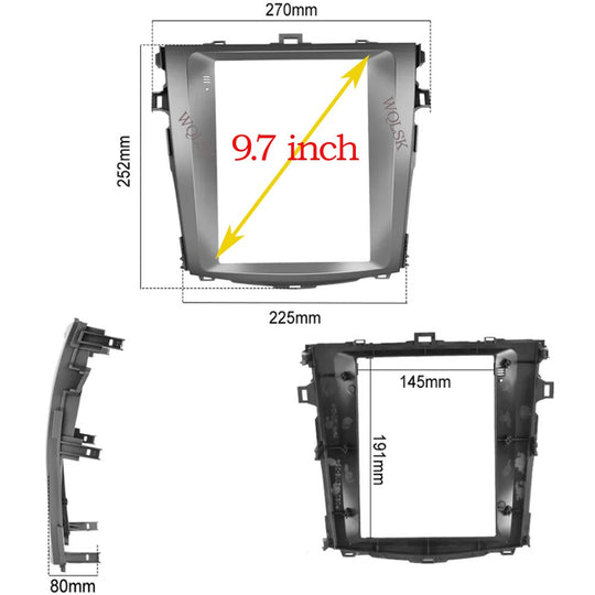 WQLSK 2 Din Car 9.7 Inch VERTIVAL SCREEN DVD GPS ABS PC Plastic Fascia Plane Frame for TOYOTA Corolla Auris 2007-2013 Dash Kit