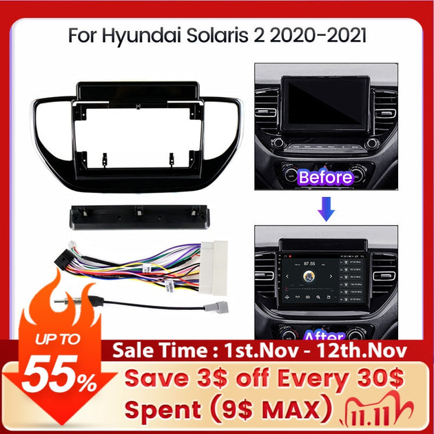 2Din 9Inch Car Audio Fascia Frame For Hyundai Solaris 2 2020 2021 Big Screen Face Plate Radio Stereo Panel Dash Mount Refitting