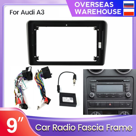 9'' Car Radio Stereo Fascia Panel Adapter Frame for Audi A3 8P 2003-2012 Android Audio Screen Cover Trim with Canbus Decoder box