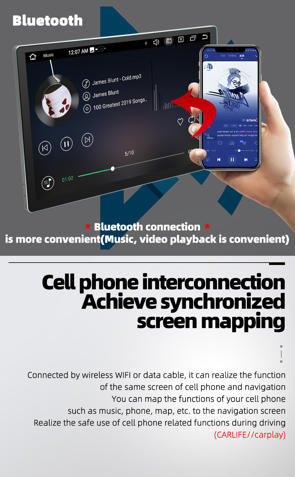 13.3 inch Android 11.0 HD digital touch screen 1. Android 11.0 operating system 2. Support 1080P+ support lossless music 3. Support steering wheel control (if your car has it) 4. Support Phone Link (AirPlay, Miracast) 5. Output: 4x50W max Power output/5.1 channel lossless audio output 6.Audio Frequency: 7 EQ balanced audio processing technology 7.OSD language: English/Russian/French/German/Spanish/Italian/Arabic/Portuguese/Turkish/Thai/ More than 20 languages such as Polish/Hebrew 8. Automatically display rear view camera image when reversing 9. Support media card/GPS card/USB memory stick up to 32GB SD card and 1T hard disk 10. Audio model: Classic/Rock/ Pop/Hall Cinema 11. Music spectrum: display music spectrum when playing audio 12. Audio format: MP3/ WMA/ FLAC/ APE/ ACC etc. 13. Picture format: JPG/ BMP/ GIF/ PNG etc. 14. Video format: H264/ MP4/ AVI/ RMVB/ FLV/ MKV/ MOV, etc. 15.WiFi: Built-in WiFi and antenna 16.Car Door Info: Display the status of the door switch (the original car has this function) 17.Rotating Speed: Display the speed on the screen 18. Running Speed: Display the running speed or engine on the screen 19. Rear view camera: For cars without original camera 20. Support the latest phone book search, you can search and find contacts in the downloaded phone book, just enter the name The first letter, you will find some related names, then you can choose the suitable one 21.Radio Tuner with RDS, 30 Preset Radio Stations (FM: 3*6, AM: 2*6) 22.USB port and Micro SD slot, support USB stick and memory card up to 32GB 23.Parking Sensor: Suitable for cars without original parking sensor 24.TPMS: USB TPMS for Android car GPS 25.Support steering wheel control function Support steering wheel control function