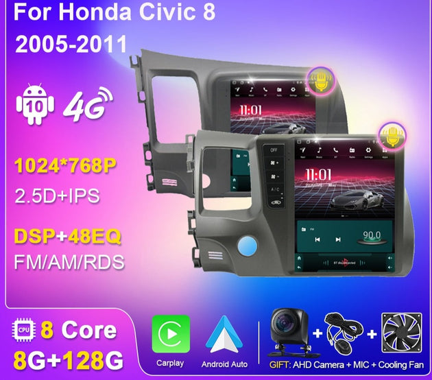 Omnitek Autoradio For Honda Civic 8 2005-2011 Tesla Style Car Radio Video Multimedia Player DSP Carplay Android GPS 2 din Audio for cars