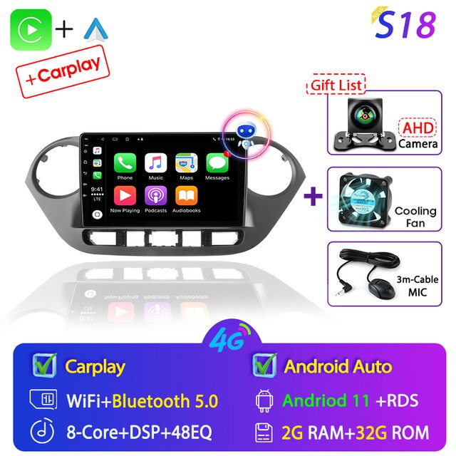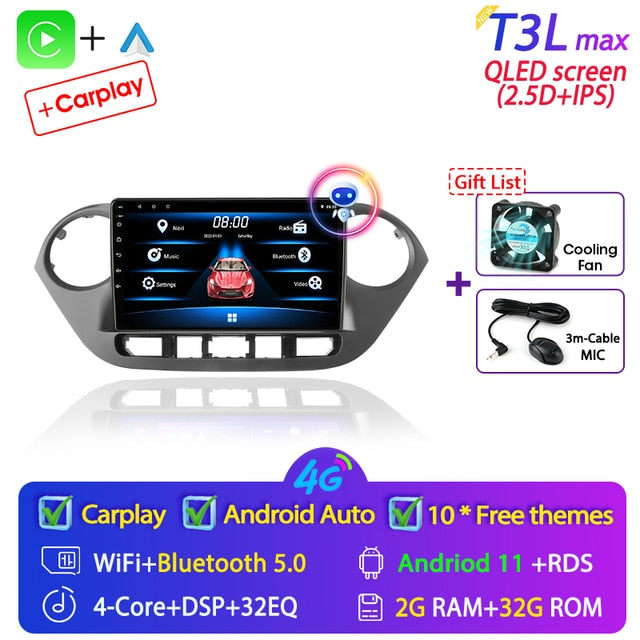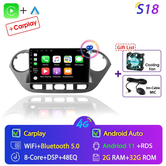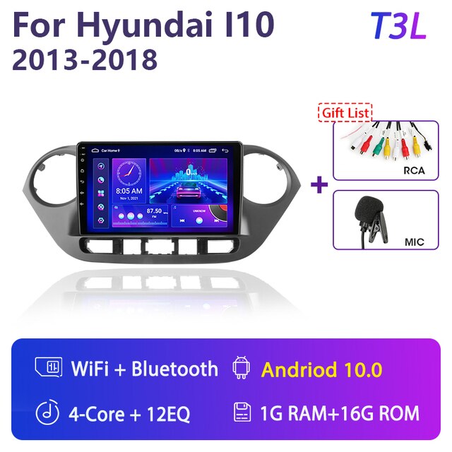OMNITEK Android 11 Car Radio for Hyundai Grand I10 2013-2018 Multimedia Player 2Din GPS Navigation Carplay Stereo DVD Head Unit Speakers