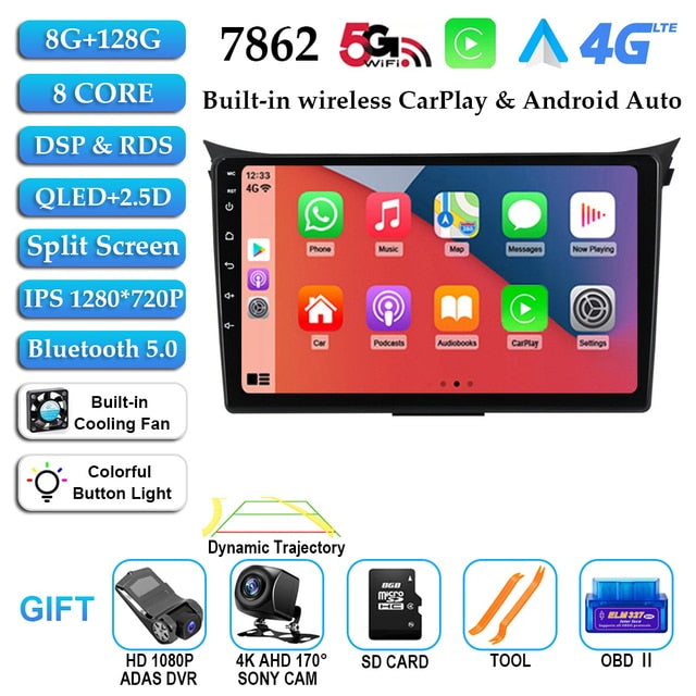 OMNITEK Carplay DSP Android 12 For Hyundai I30 Elantra GT 2012 - 2016 Car Radio Multimedia Video Player Navigation Stereo GPS 2 Din DVD