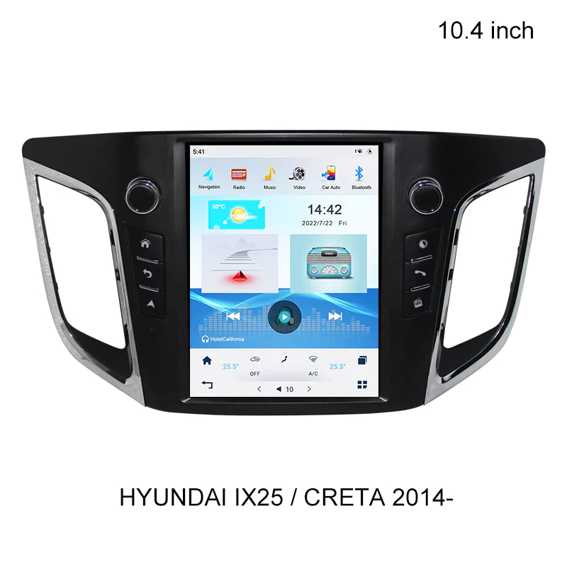 Enjoy a modern driving experience in your HYUNDAI IX25 / CRETA 2014-Tesla with this 10.4" Android car radio. Experience the latest in multimedia technology with advanced GPS navigation, carplay, and a vertical screen. Get the convenience of up-to-date features and enhanced connectivity.