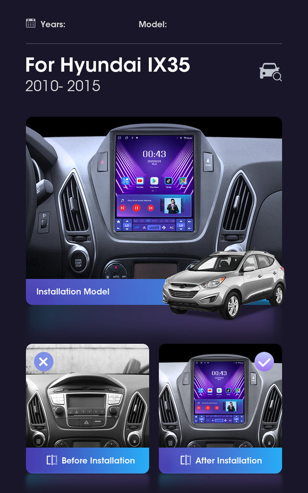 Regular price From $299.00Discover a new way to enjoy your drive with the 10.4 Inch Car Radio for Hyundai Santa Fe / Ix45 2013- Tesla Vertical Screen Bluetooth GPS Navigation Stereo Head Unit. This state-of-the-art device features a 10.4... -