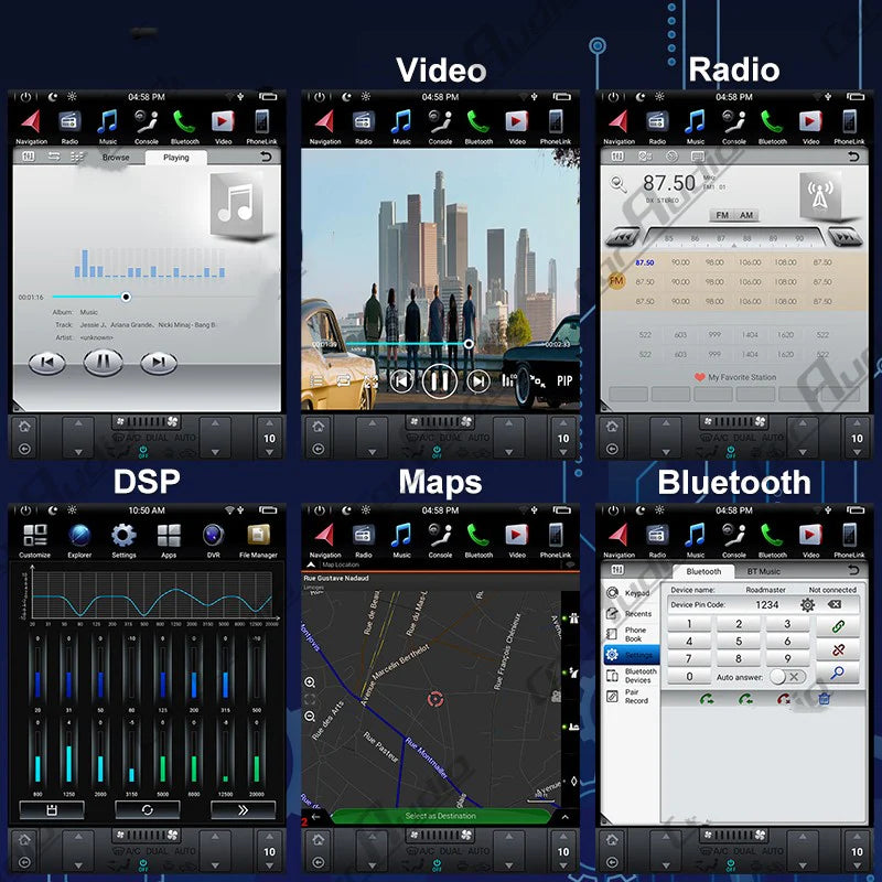 Built-in GPS Off-line Map, and Support Online Map Audio output 4*60W, EQ: 9 Equalizers for Sound