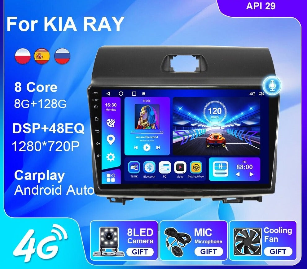 Omnitek Android 10 For KIA RAY 2011-2017 Multimedia Car Radio GPS Navigation Android Auto 4G WIFI Carplay DSP 2 Din DVD Player