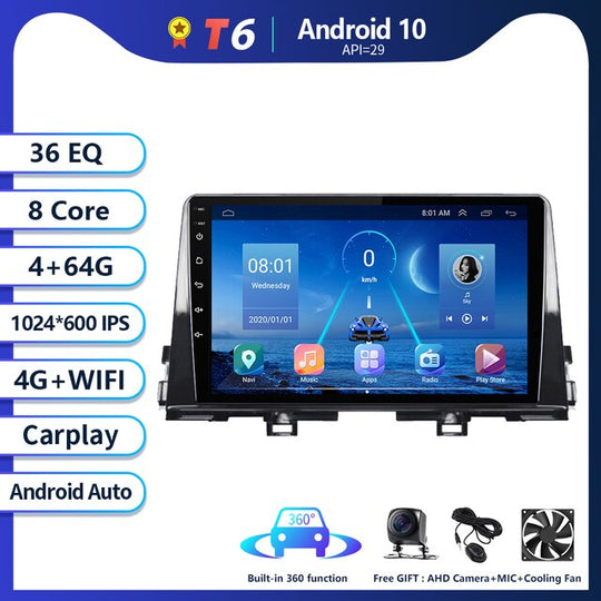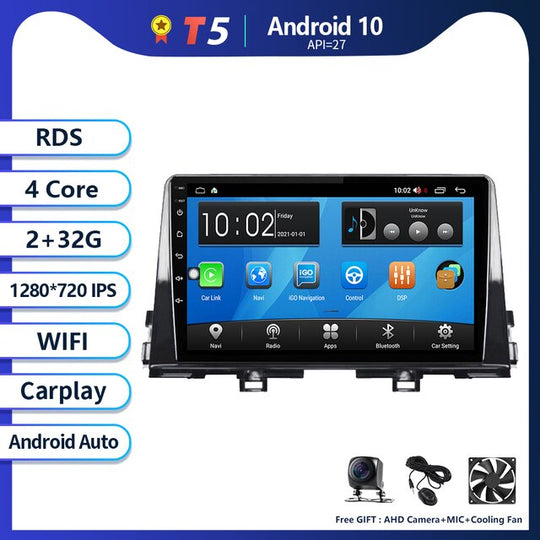 Omnitek Android 10 For KIA RAY 2011-2017 Multimedia Car Radio GPS Navigation Android Auto 4G WIFI Carplay DSP 2 Din DVD Player