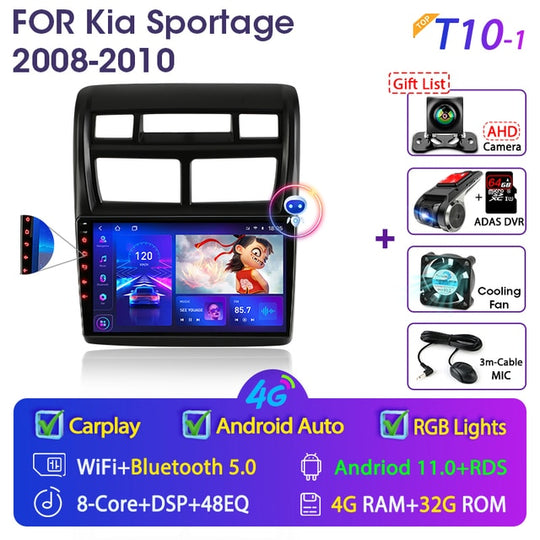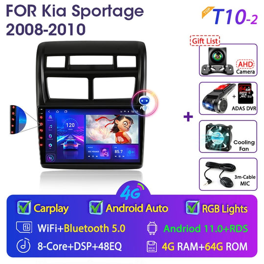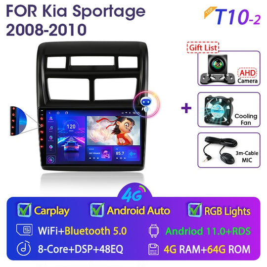 Omnitek Android 11.0 Car Radio for Kia Sportage 2 2008- 2010 Multimedia Video Player 2Din 4G GPS Navigation Carplay DVD Head Unit