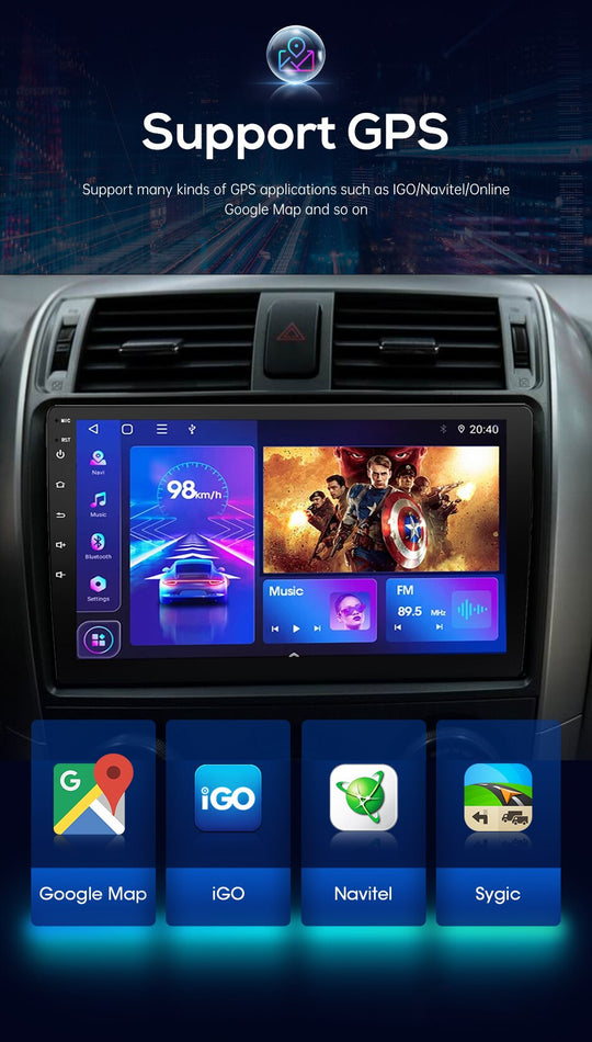 GPS DVDMain features: Operating system: Android10.0 Screen size: 9/10 inch high-definition digital screen Screen resolution 1024*600, 1024 *720, 1280 x 1280, 2K screen, Memory: 1GB+ 16GB/2GB+ 32GB/4GB+64GB/ 6+128G (optional) Processor: 4-core/8-core output power : 4x50W...Regular price From $129.00 -