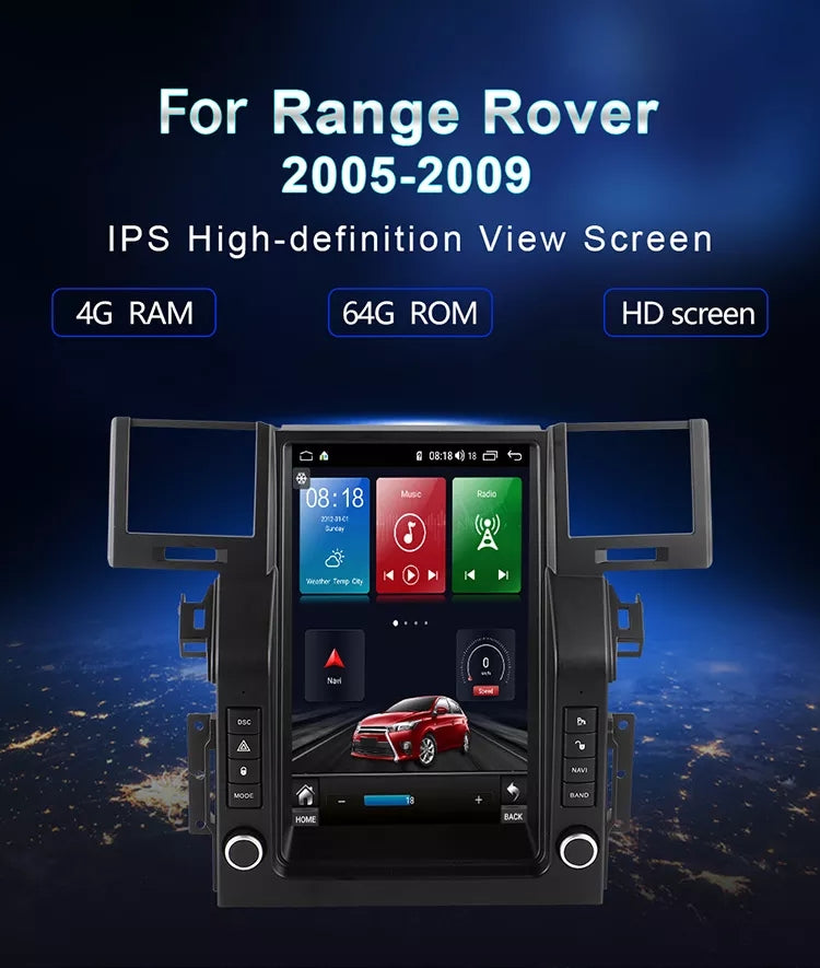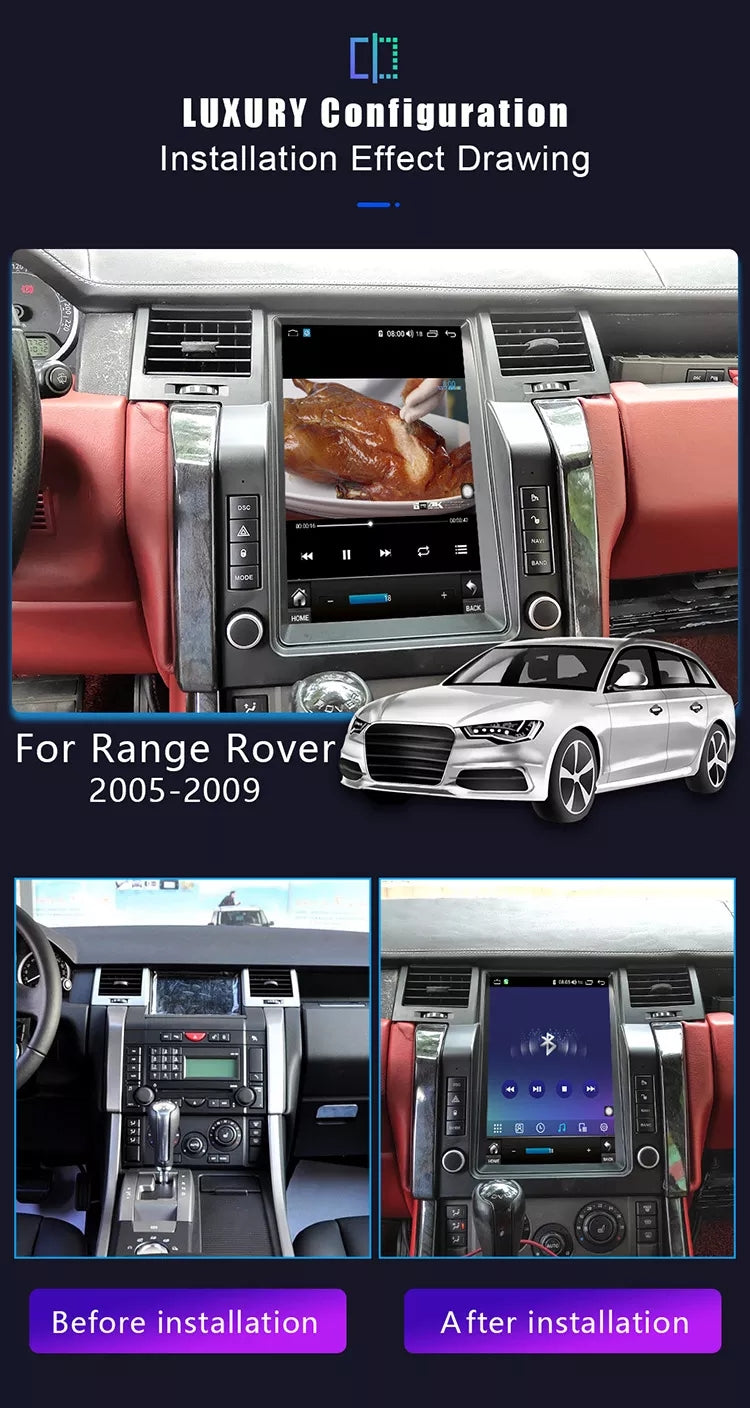 OMNITEK 12.1" Android 10.0 Vertical Car Multimedia Player Auto GPS Navigation for Land Range Rover Sport Car Radio 2005-2009
