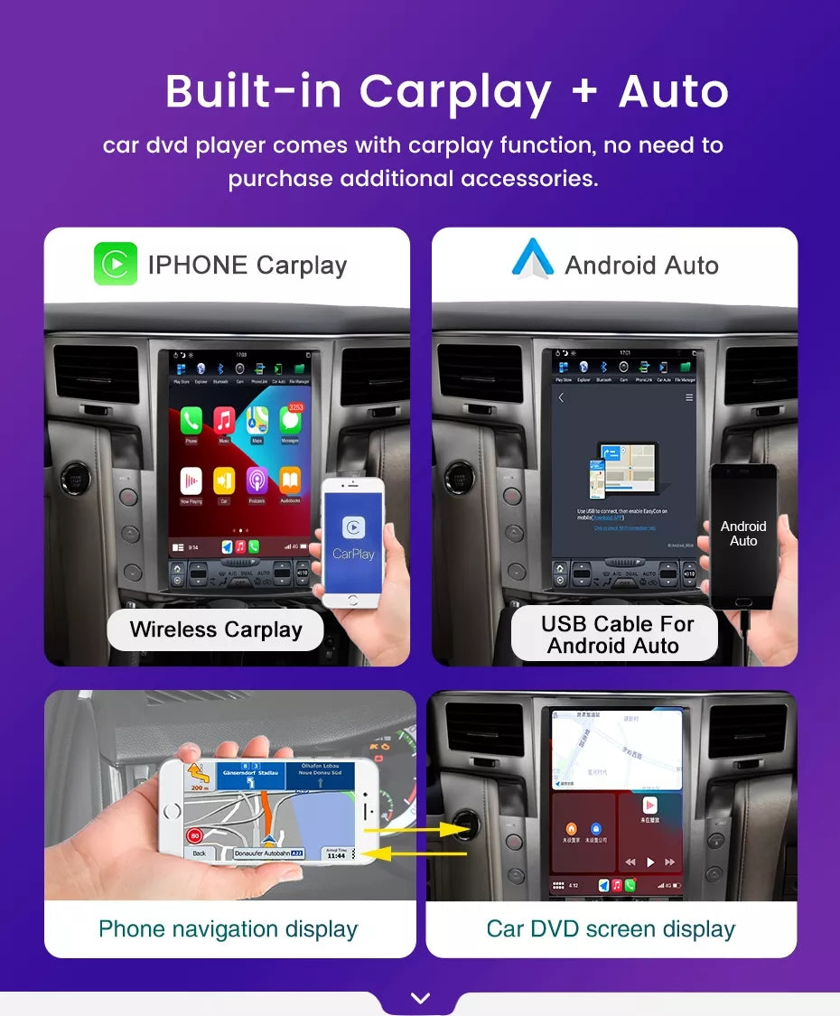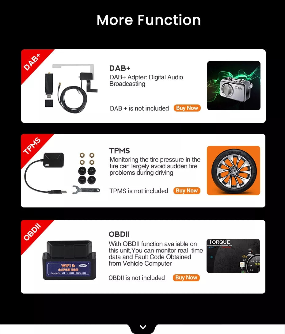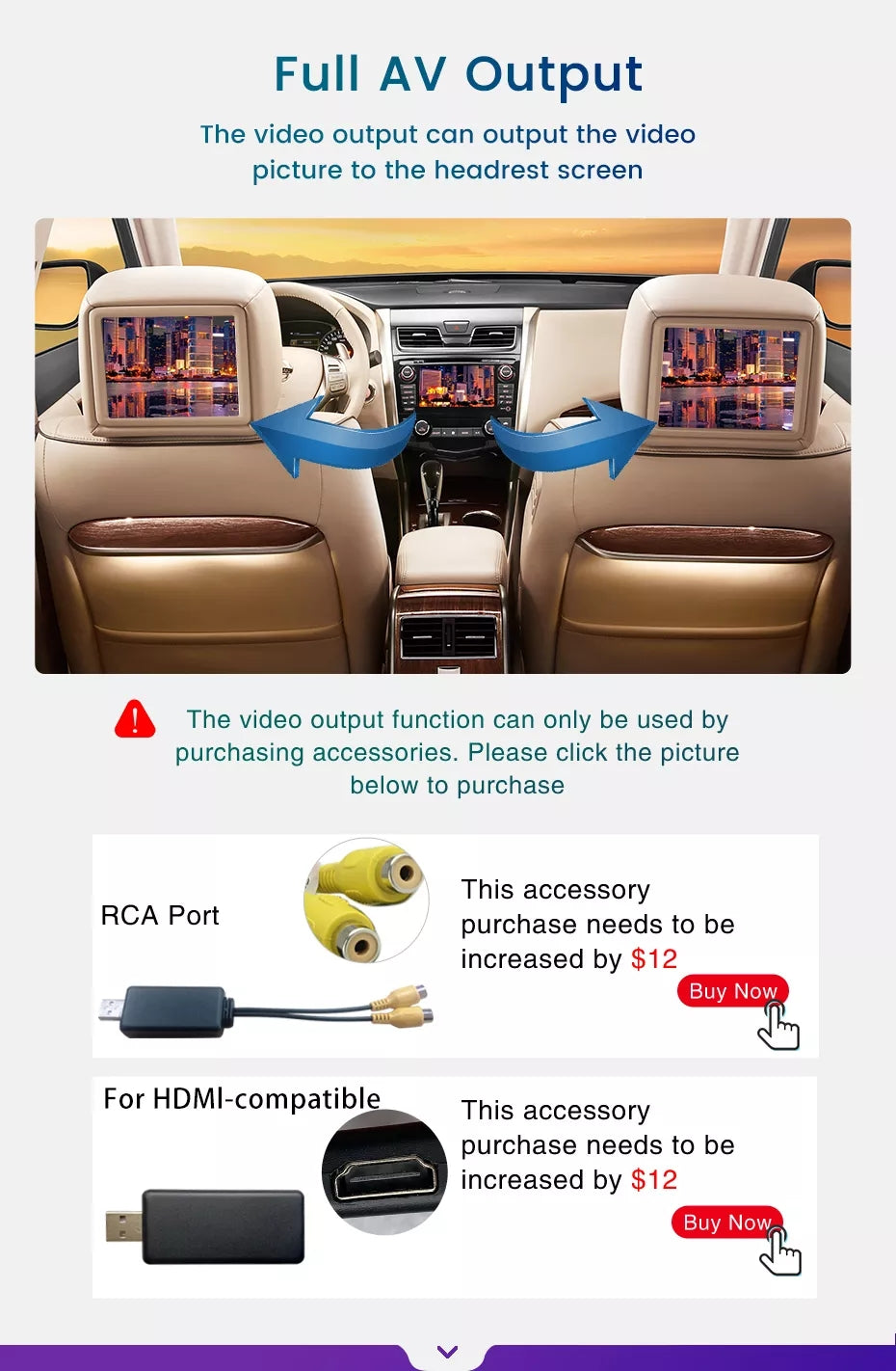 13.6英寸Android 11.0高清数字触摸屏 1.Android 11.0操作系统 2.支持1080P+支持无损音乐 3.支持方向盘控制(如果您的车有) 4.支持Phone Link (AirPlay, Miracast) 5.输出:4x50W最大功率输出/5.1 声道无损音频输出 6.Audio Frequency:7 EQ blanced 音频处理技术 7.OSD 语言:英语/俄语/法语/德语/西班牙语/意大利语/阿拉伯语/葡萄牙语/土耳其语/泰语/波兰语/希伯来语等超过 20 种语言 8.倒车时自动显示后视摄像头图像 9.支持媒体卡/GPS 卡/USB 记忆棒高达 32GB SD 卡和 1T 硬盘 10.音频模型:经典/摇滚/流行/大厅影院 11 .音乐频谱:播放音频时显示音乐频谱 12.音频格式:MP3/ WMA/ FLAC/ APE/ ACC等 13.图片格式:JPG/ BMP/ GIF/ PNG等 14.视频格式:H264/ MP4/ AVI/ RMVB/ FLV/ MKV/ MOV等 15.WiFi:内置WiFi和天线 16.Car Door Info:显示车门开关状态(原车有此功能) 17.Rotating Speed :在屏幕上显示转速 18.运行速度:在屏幕上显示运行速度或发动机 19.后视摄像头:对于没有原装摄像头的汽车 20.支持最新的电话簿搜索,您可以在下载的电话簿中搜索和查找联系人,只需输入名字的第一个字母,你会发现一些相关的名字,然后你可以选择合适的一个 21.Radio Tuner with RDS, 30 Preset Radio Stations (FM: 3*6, AM: 2*6) 22.USB 端口和Micro SD 插槽,支持最大 32GB 的 USB 棒和存储卡 23.Parking Sensor:适用于没有原装停车传感器的汽车 24.TPMS:Android 汽车 GPS 专用的 USB TPMS 25.支持方向盘控制功能支持方向盘控制功能
