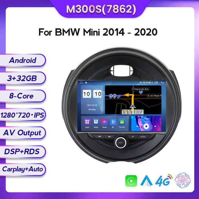 OMNITEK 4GB Android 11 Car GPS Navigation DVD Player For 2014-2020 BMW Mini Cooper Support Radio 1080P Video Support Rear Camera DAB SWC