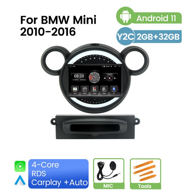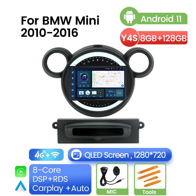 Omnitek QLED DSP Android 11 Car Autoradio For BMW Mini 2010 - 2016 RDS FM/AM Carplay 8G 128G Video Player 4G GPS Navigation BT No DVD
