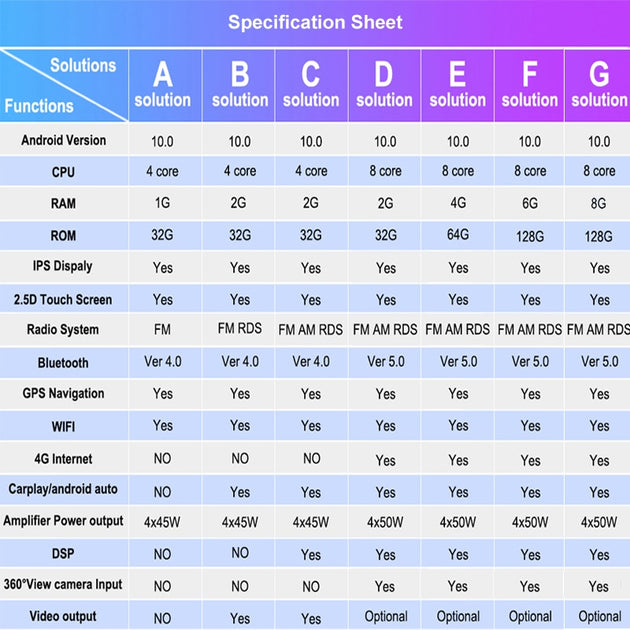Sale price From $109.00Regular price $199.00全球定位系统DVD 主要特点: 操作系统:Android10.0 屏幕尺寸:9/10寸高清数字屏 屏幕分辨率1024*600 内存:1GB+ 16GB/2GB+ 32GB/4GB+64GB(可选) 处理器:4核/8核 输出功率:4x50W FM 频率范围:87.5-108 MHz,可预设 18 个广播电台 GPS 导航:谷歌在线地图…… 9/10英寸Android 11.0高清数字触摸屏 1.Android 11.0操作系统 2.支持1080P+支持无损音乐 3.支持方向盘控制(如果您的车有) 4.支持Phone Link (AirPlay, Miracast) 5.输出:4x50W最大功率输出/5.1 声道无损音频输出 6.Audio Frequency:7 EQ blanced 音频处理技术 7.OSD...