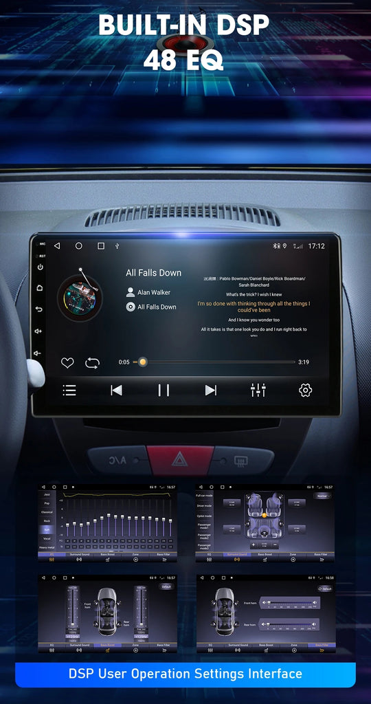 9/10英寸Android 11.0高清数字触摸屏 1.Android 11.0操作系统 2.支持1080P+支持无损音乐 3.支持方向盘控制(如果您的车有) 4.支持Phone Link (AirPlay, Miracast) 5.输出:4x50W最大功率输出/5.1 声道无损音频输出 6.Audio Frequency:7 EQ blanced 音频处理技术 7.OSD 语言:英语/俄语/法语/德语/西班牙语/意大利语/阿拉伯语/葡萄牙语/土耳其语/泰语/波兰语/希伯来语等超过 20 种语言 8.倒车时自动显示后视摄像头图像 9.支持媒体卡/GPS 卡/USB 记忆棒高达 32GB SD 卡和 1T 硬盘 10.音频模型:经典/摇滚/流行/大厅影院 11 .音乐频谱:播放音频时显示音乐频谱 12.音频格式:MP3/ WMA/...Regular price From $109.00 -