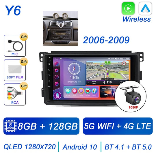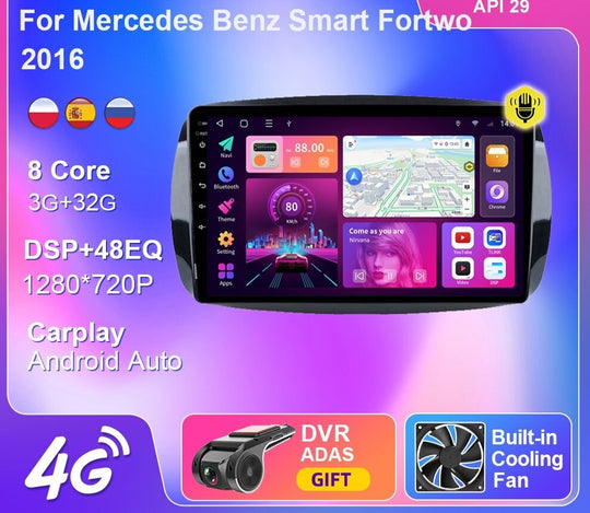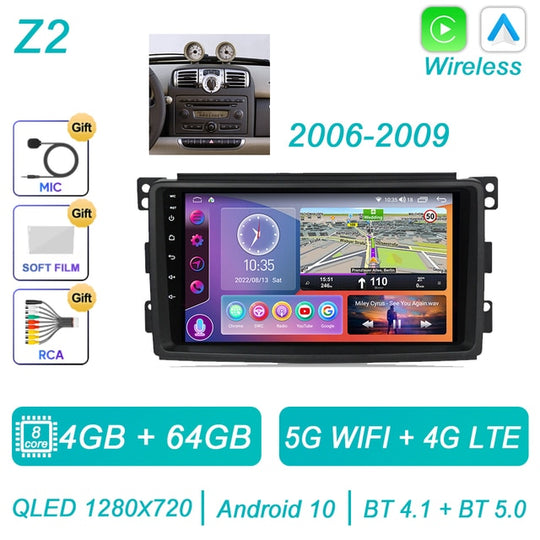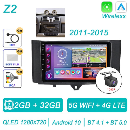 Omnitek For Mercedes Benz Smart Fortwo 2006 2007 2008 2009 2011-2015 Car Radio Multimedia Player Android 2 Din Carplay Navigation GPS 8G