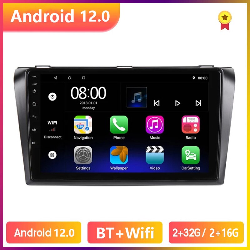 OMNITEK For Mazda 3 2004-2010 Android 12.0 Car GPS Radio Stereo 2G + 32G WIFI Free MAP Quad Core 2 din Car Multimedia Player NO DVD