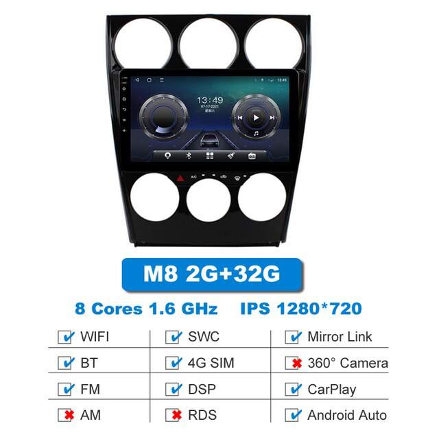 Omnitek Android 12 360 Panorama For MAZDA 5 2005 2006 2007 2008 - 2010 Old Car Radio Multimedia Video Player Navigation GPS 2 Din DVD